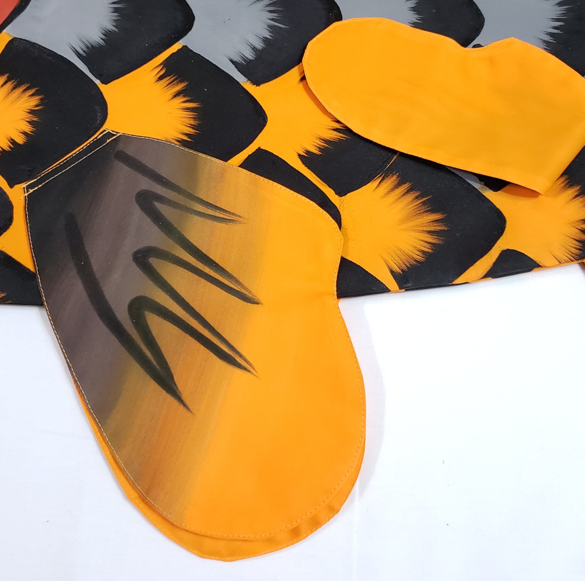 また、通常は一枚の布で形づくられるこれらのヒレ(胸ビレ・腹ビレ)ですが、威風堂々では補強のために二枚の布を合わせ、袋縫いにしてあります。