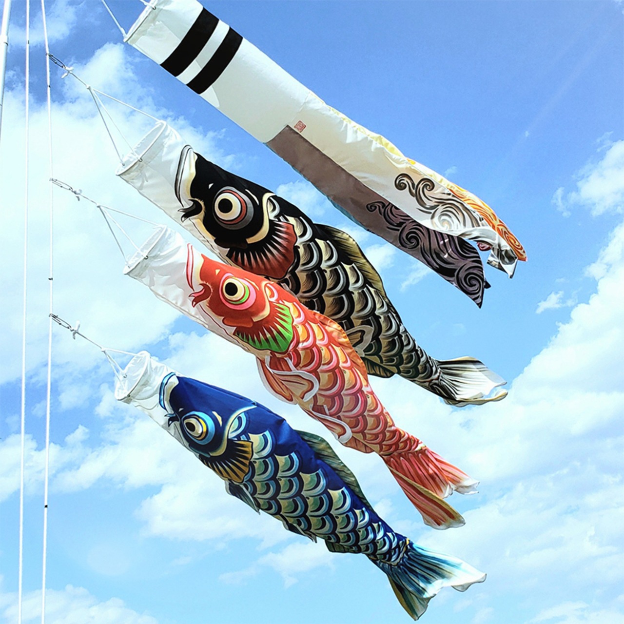また、想像力豊かな子供に育ってほしいという願いを込めて、鯉のぼりには欠かすことのできない目には見えない風の形や色を絵柄として表現しました。