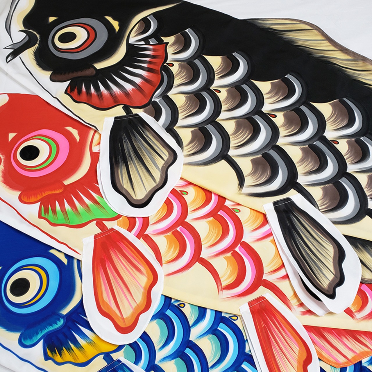 【力強いデザインの中に手描きの「勢い」と「繊細」さを表現した鯉のぼり】